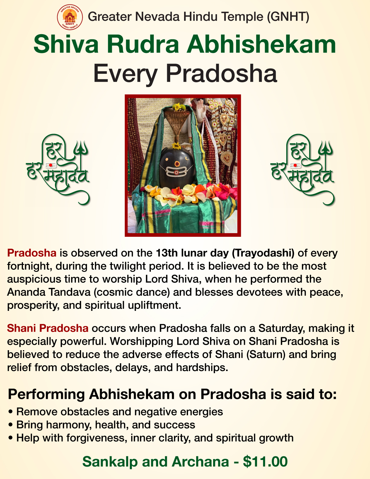 - Shiva Abhishekam- Every Monday